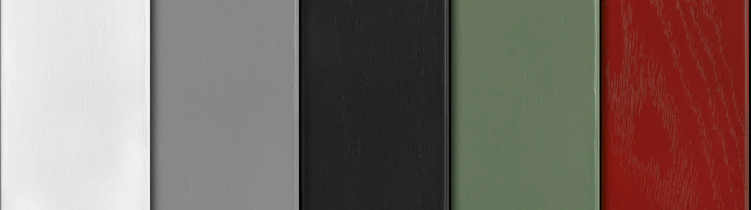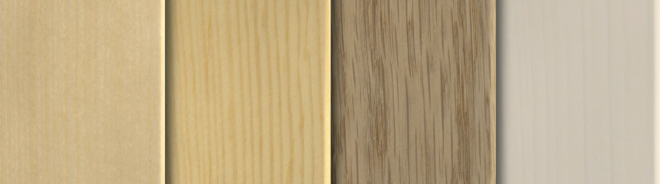 Das Türblatt ist bei Modellen ohne Vorhangplatte (VS) in unterschiedlichen Holz-Ausführungen und Oberflächen möglich.