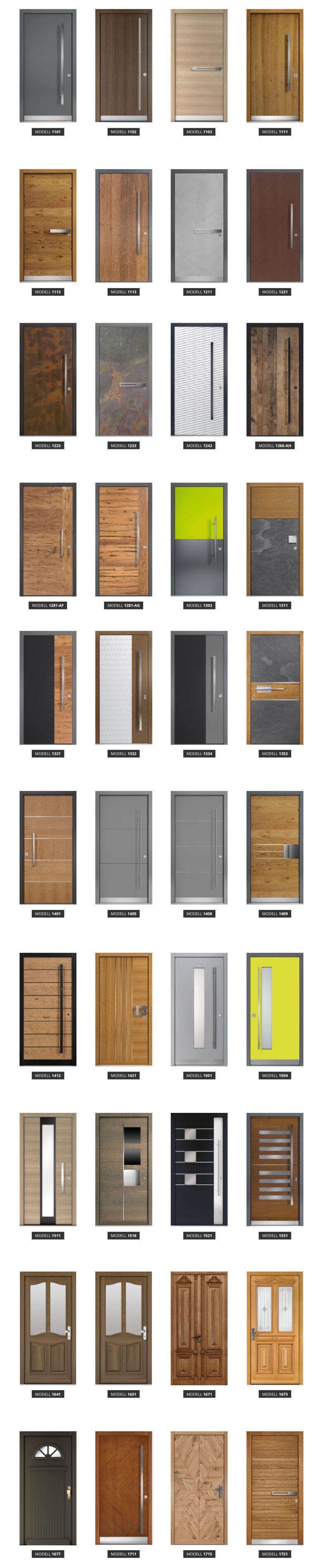 Hier finden Sie unsere HOLZ-Haustürmodelle. Allen diesen Varianten ist gemeinsam, dass der Türrahmen in Holz ausgeführt ist.