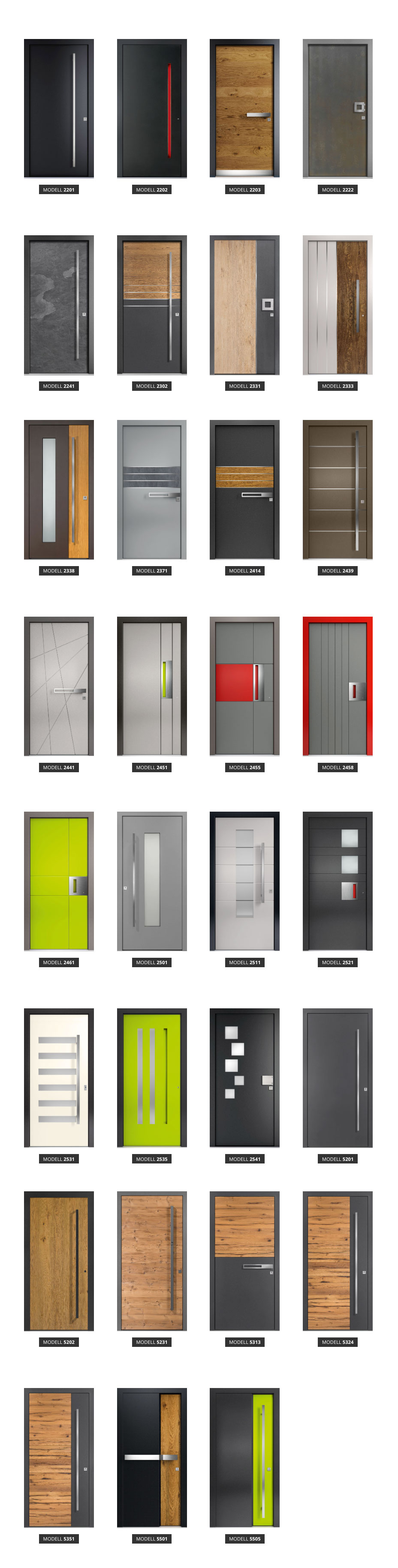 Allen diesen Varianten ist gemeinsam, dass der Türrahmen außen in Aluminium ausgeführt ist.